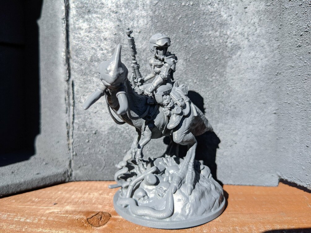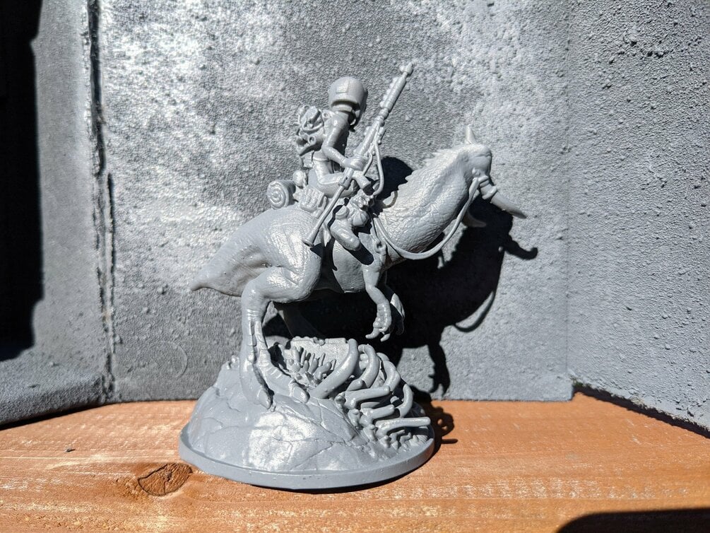 A raider and its mount inspired by Ralph Bakshi's Wizards. would fit well for any WH40k special characterm or anything a bit scifi/ post apo style!